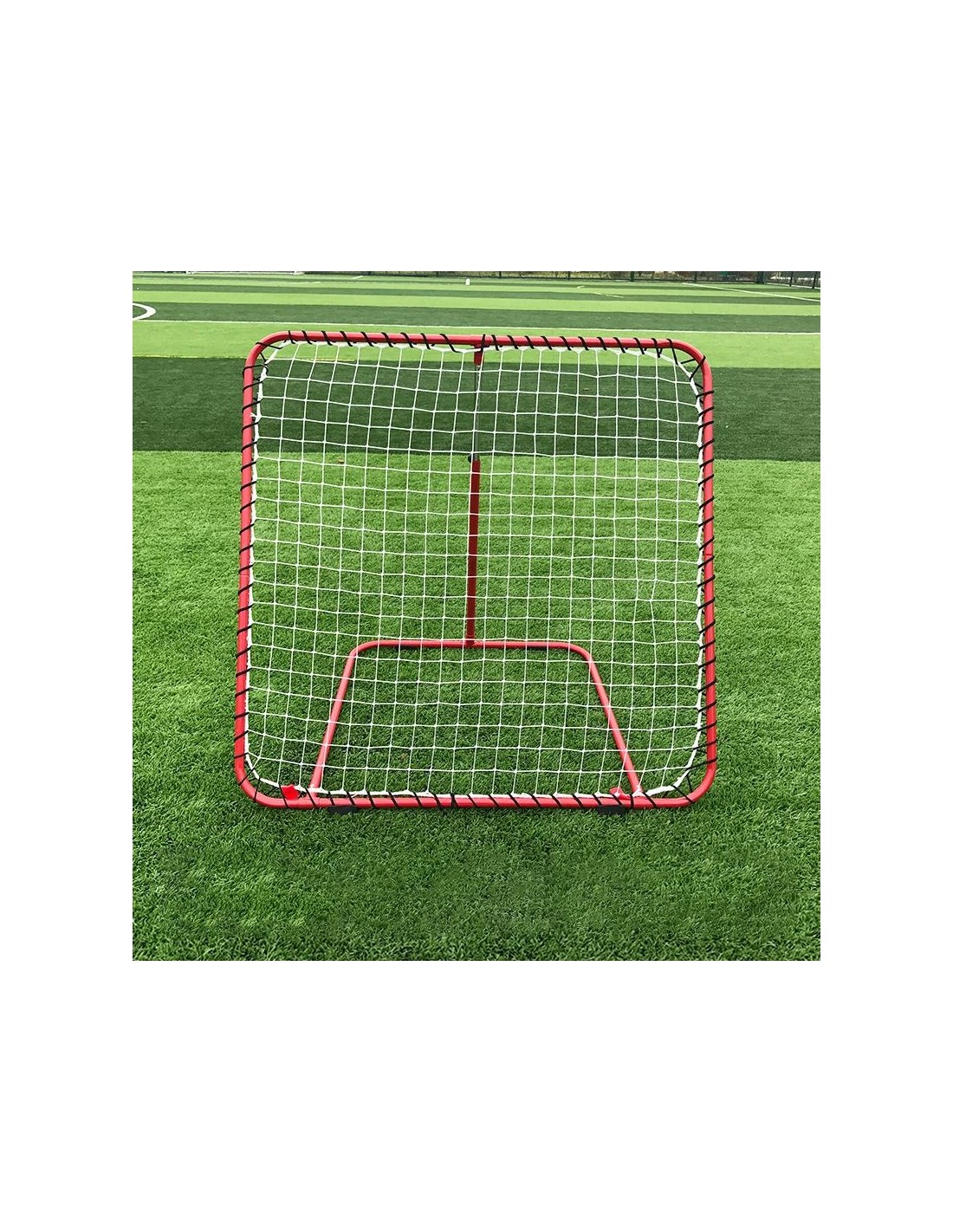 Regulable y fabricada con estructura de acero y protecciones en la parte inferior para no dejar marcas. Elásticas, fuertes y con ángulo ajustable. La dificultad es proporcional al ángulo de la portería: a mayor ángulo, mayor dificultad. Cuadro metálico: 102x102 cm. Superficie de rebote: 85x85 cm. Peso: 18kg.