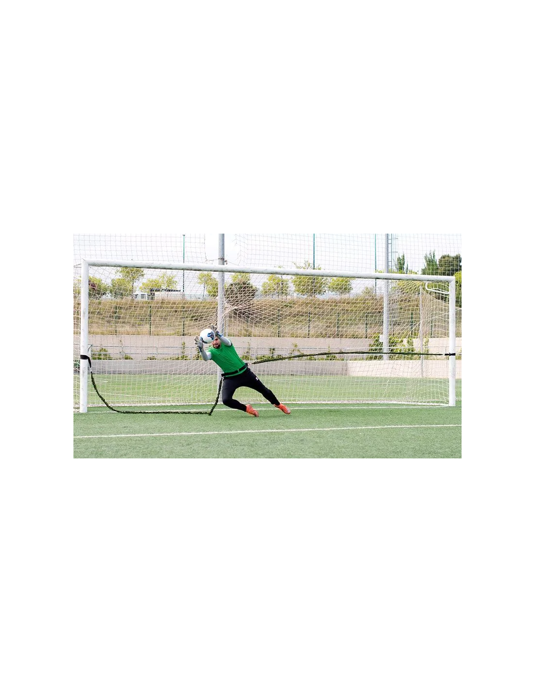 La resistencia generada por los movimientos obliga al portero a moverse y realizar fuerza para recoger el balón.